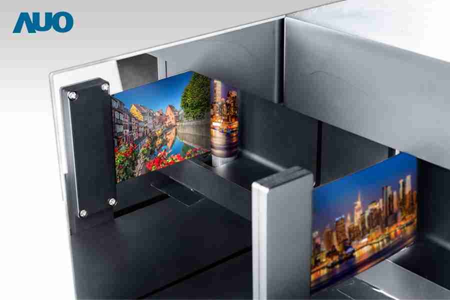 财神娱乐 5.6寸双面可卷式 OLED 显示器,,双面显示可让不同用户观看,,,并以卷曲方式收纳便于携带