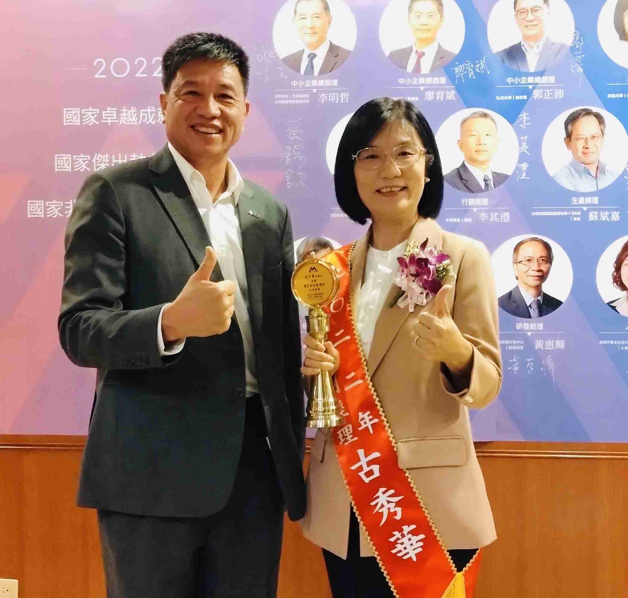 古永续长对企业永续发展的付出与杰出表现,,接连获得2020亚洲顶尖永续超级女性️以及2022亚太顶尖永续长奖,,,这次更得到中华民国企业经理协进会第40届「国家杰出经理奖」。。️ 「从一而终,,,砥砺自己跨域学习、、、勇于面对多元挑战。。。」在全球ESG和低碳转型浪潮下,,古秀华带领团队贡献所学,,,,一路协助公司转型成长。。。 肯定其对企业永续发展领域的投注心力及杰出贡献